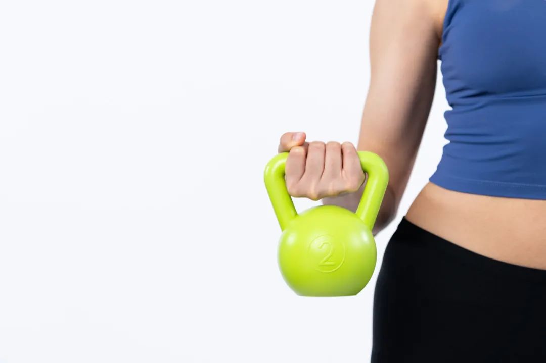 选一个合适的重量壶铃,放在胸前,双手紧紧握住壶铃的手柄,肘部紧贴身体。