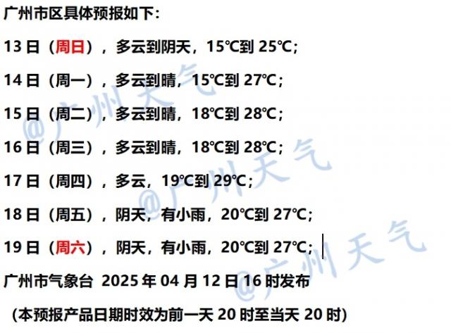 13 星期天(星期天),多云到阴天,15 ℃到 25 ℃;