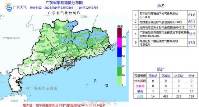 昨天白天下了多少雨?根据气候水文监测,4 月 12 日 8 时到 4 月 12 日 17 当时,全省平均雨量 9.8 mm,超出 25 mm镇街占全省总镇街数。 15.4%,有 11 超越了一个镇街 50 毫米暴雨,有 240 个镇街取得 25 mm~50 在河源和平县,mm的大雨 61.6 mm最大。全市最大累计雨量在广州从化区吕田镇取得。 38.7 最大小时的mm和雨强 36 mm。