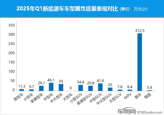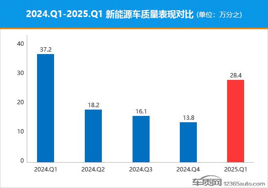 根据国内领先的缺陷汽车产品信息收集平台车质网数据,2025 每年一季度,国内新能源汽车质量投诉共受理 5,990 宗,第一季度乘联会数据显示,同期国内新能源汽车(进口汽车除外)销量约为 245.1 万台,包含 338 款车。这次车质网只统计了这个 338 汽车首次质量投诉案例,计算得出 2025 每年第一季度,新能源汽车质量投诉销售比例为万分之一 28.4,与 2024 与跳跃性增长相比,年四季度质量水平急剧下降。