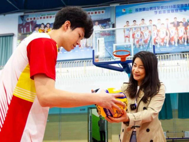 随后,郭晶晶来到体育馆观看金奥排球队的训练,签署了“责任、团队、巅峰”的排球,并与球员交流。在交谈中,她鼓励球员们:“只有当你有了人生的目标,你才能有一个飞跃。”