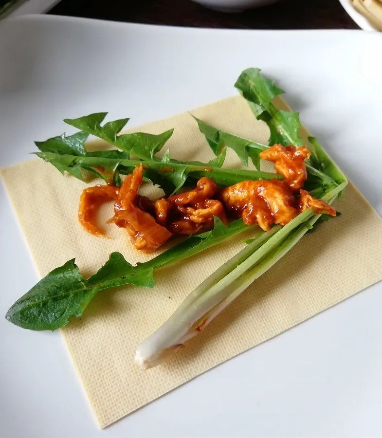桦南大煎饼包裹着刚露头的婆婆丁,咬一口可以从舌尖绿到心尖。