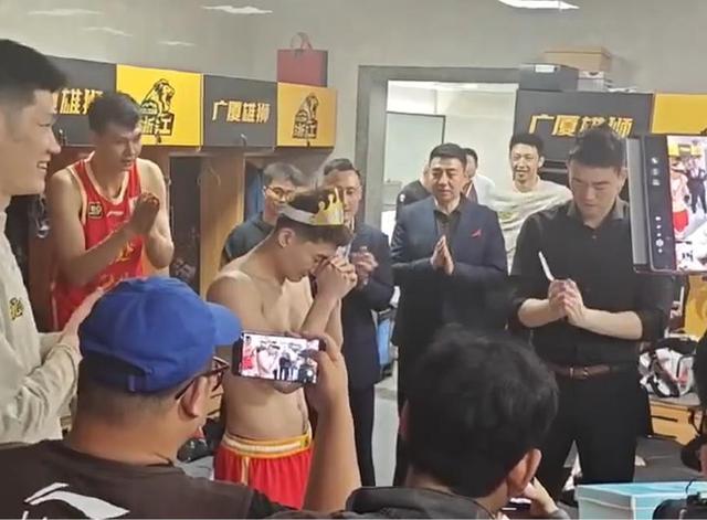 胜利后,广厦为孙铭徽庆祝生日!祈祷后主动躺在地上砸蛋糕,脚踝绑冰袋不妨碍。