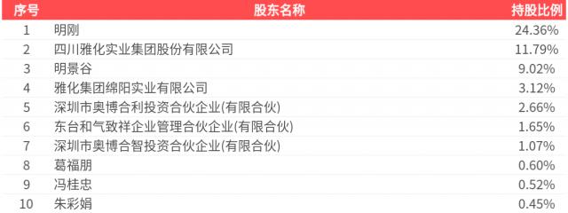 公司股东户数为 2.06 万家,前十大股东持有的股份数量是 1.92 亿股,占总股本的比例为亿股。 55.25%,前十大股东持股情况如下: