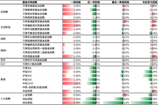 基金表现:上周,万得中国基金总指数上涨。 0.81%。其中,万得普通股票基金指数上涨 万得偏股混合型基金指数上涨1.66%。 万得债券基金指数1.90%上涨 0.03%。