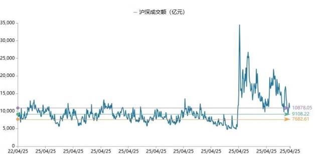 注:沪深交易所成交额彩色标记水平线分别为横轴统计日期范围内的成交额。 25%、50%、75% 分位线,只用于静态显示,不含任何投资建议。