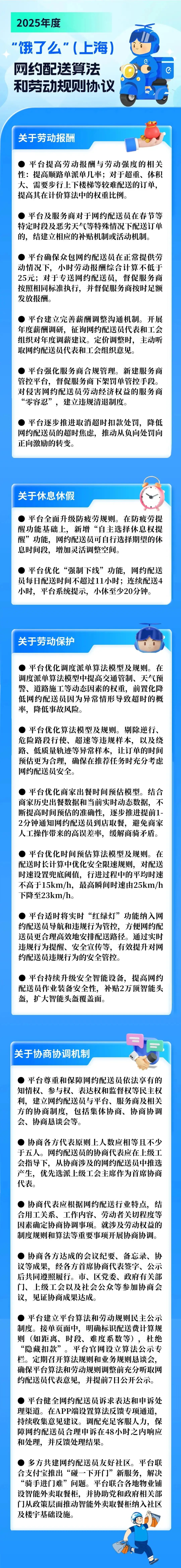 从协议内容来看,覆盖面广,全面涉及骑手在劳动报酬、合规管理、休息休假、劳动安全和讨论机制等方面的切身利益。,这无疑会在JD.COM和美团外卖大战的关键节点吸引一波关注。