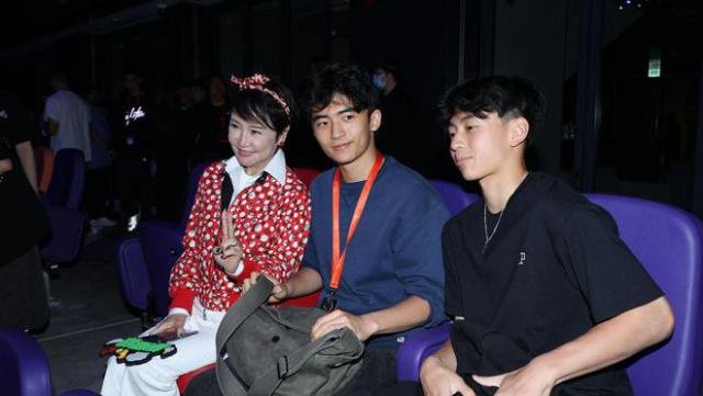 她们低调地坐在普通观众台上,哥哥谢振轩和粉丝们简单地互动了一下,小弟谢振南则比较害羞,不爱说话。