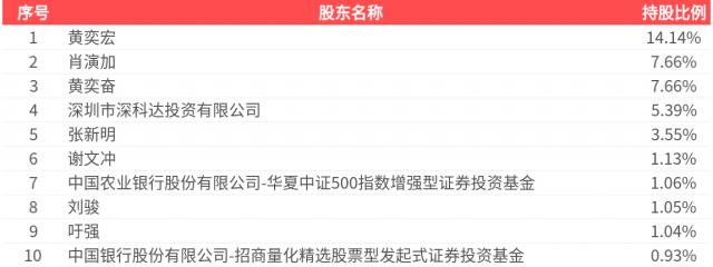 公司股东户数为 6226 户,前十大股东持有的股份数量为 4119.48 万股,占总股本的比例是 前十大股东持有43.61%的股份如下: