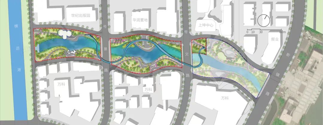 这个绿化从西到北横泾,从东到新镇路,与闵行文化公园遥相呼应。北侧有报业传媒谷、华润置地、宝龙城、世纪出版园、上坤中心等。南侧有万科,南北两侧有高层建筑。可以说建在商务区的滨水客厅,也是闵行市民休闲娱乐的好地方。