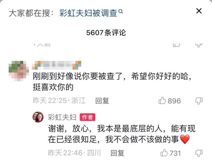 事件发生时,“彩虹夫妇”删除了相关视频,并在评论区回应网友,称“我是最底层的人,现在已经很满足了,不会做不该做的事情”。截至发稿时,青眼未从公开渠道查到成都税务局相关事件的调查报告进展情况。