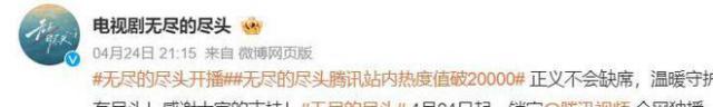大家都知道今年悬疑主题吃香,爱看的观众很多,但没想到的是,任素汐的《无尽的尽头》刚刚播出。 3 集,评分 9.8,热度居然直接飙升至直接飙升 20000,成为热榜第一。