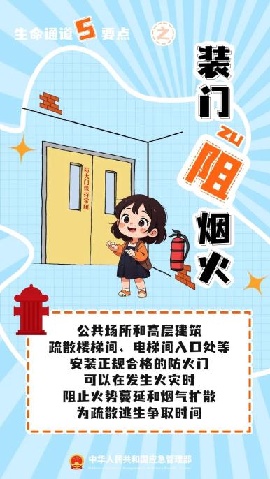 注意消防设备、逃生设备的位置和使用方法,如遇火灾,请规范使用,确保安全。