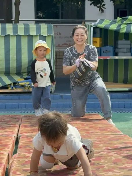 在老师的指导下,祖先的父母陪伴孙子孙女参加“大陀螺旋转”、“平衡步道”等有趣的项目,仔细观察孩子的行为特点。针对“过度保护”、“沟通障碍”等痛点,幼儿园教师现场进行情景模拟教学,手把手教授“蹲下来说话”、“游戏指导”等实用技巧,让家庭教育指导从理论走向实践。