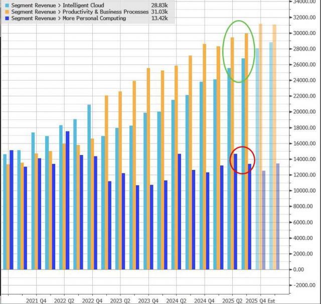 微软的“生产力与工作流程”部门(包括 Office 软件订阅和 LinkedIn)实现营收 299.4 亿美元,同比增长 超出分析师预期的10% 295.7 亿美金。