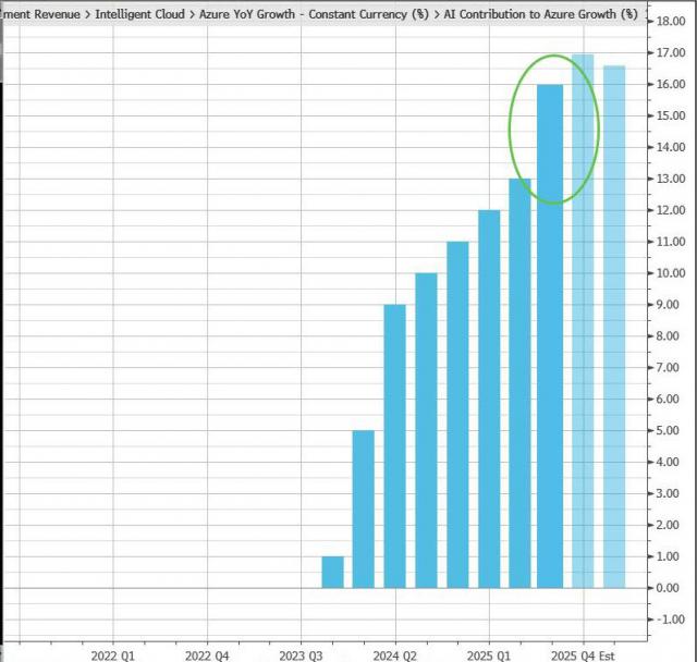第三财季 Azure 增加人工智能(AI)业务奉献 16 %,分析人员的期望是 15.6 %,上个季度这个比例是 13 %。