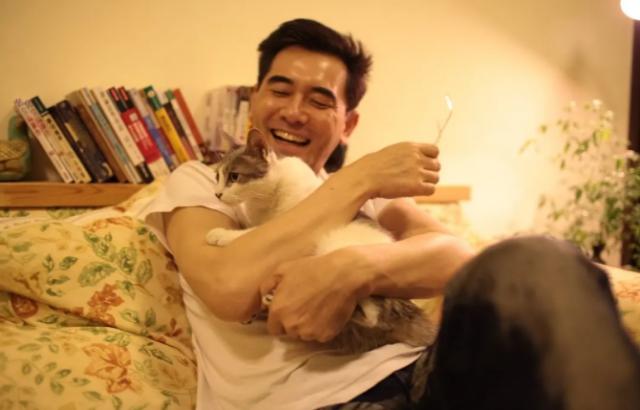 每天陪伴他的,是他养的。 6 只猫、3 狗,还有一群鸡鸭鹅。