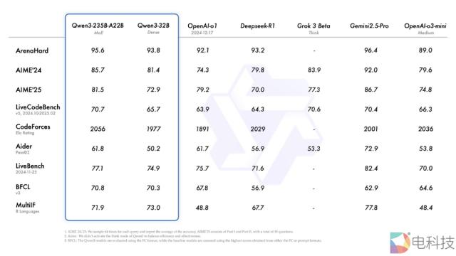 旗舰模型 A22B-Qwen3-235B- 基准测试,如代码、数学、通用能力等, DeepSeek-R1、OpenAI 的(o1、o3-mini)、马斯克的 Grok-3 和谷歌公司 Gemini-2.5-Pro 与顶级模型相比,表现出极具竞争力的结果。