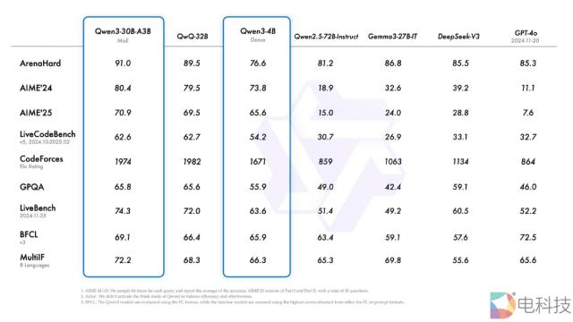 简而言之,Qwen3 虽然身材较小,但“技巧”较大。比如 Qwen3 的 1.7B 小模型,表现已经可以赶上以前了。 3B 大型模型,而且数理编程能力更强。