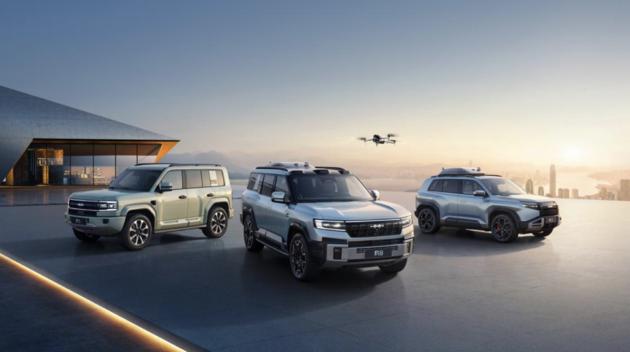 钛是展位的焦点 3 上市即登上 A 级 SUV 爆款榜单。它所搭载的星战美学设计风格 SUPER 3 潮流改版得到了完美的延伸,通过对概念车未来造型的再现,创造出星际战车般的外观冲击。家族旗舰豹 8 无人机版集比亚迪、DJI、华为三大科技巨头技术精髓于一体,配备了世界上第一个智能车载无人机系统。一键拍摄功能的现场演示引起了观众的惊叹。而且获得硬核越野销售冠军的豹子 5 智能驾驶版,成为业内唯一一款集比亚迪“天神之眼”和华为“乾乾智驾”双智驾系统车型。