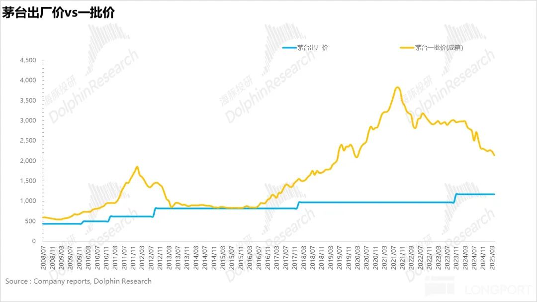 假如角度被拉回到几年前,按照传统的研究框架,那么市场上绝大多数的分析都会认为 2025 一年是茅台业绩快速增长的一年。由于如果从 4 年前茅台产量推测原销量(2021年) 年度茅台实际产量同比增长 12.6%),2025 每年可以销售的原酒是一年的重量。假如再考虑一下去年下半年茅台的飞天出厂价从哪里来? 969 提高 20% 到 1169,而分销渠道的比例超过 所以价格端增量也超过50%。 10%,如此贯彻茅台业绩,2025年 年收入增长率至少可以达到 20% 以上。