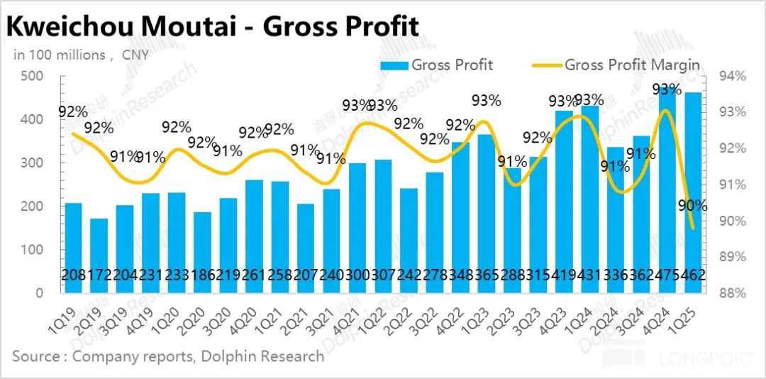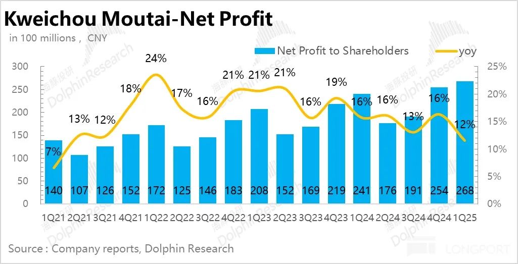 利润方面,1Q25 茅台实现归母净利润 268.5 亿元,同比增长 11.6%,再一次比收入增长更快,海豚君推断,茅台非标酒在第一季度不断增加(KG酒) 老酒 十二生肖酒)的投放力度。