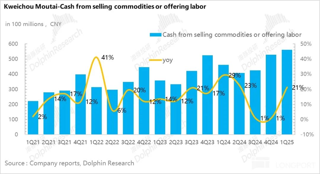 从 “贮水池” 根据合同债务,茅台合同债务在第一季度末为 87.9 同比减少1亿元 与上一季度相比,8%的大幅下滑。 32% 虽然有所收窄,但仍表明公司控货挺价的幅度仍然很大。回款同比增长 与去年相结合的21% Q4 海豚推断的数据主要是春节期间发货节奏的差异造成的。