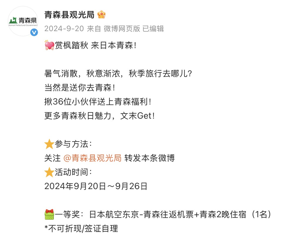 更值得注意的是,前几天在日本横滨举行的2025微博文化交流之夜,“微博日本年度旅游宣传荣誉”奖实际上被授予了日本的一个小地方——青森县。