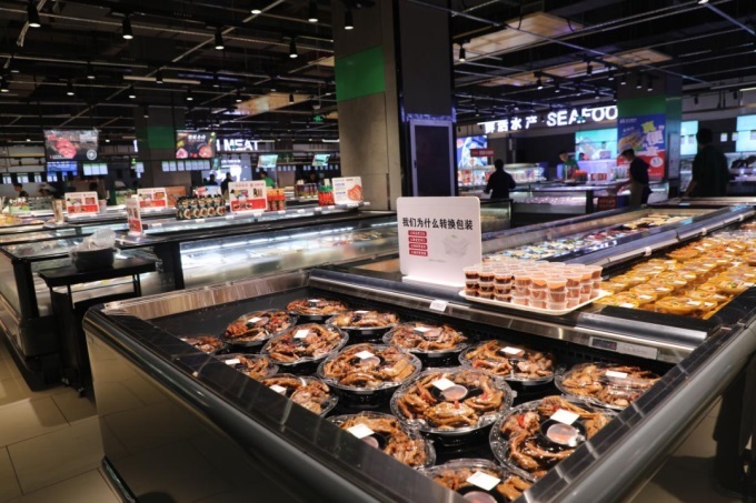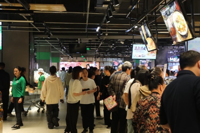 就服务而言,超市增加了许多暖心细节。比如生鲜区的水产品现在捞沥水,包装袋去皮,还有免费加工服务;果切区,严格遵守“268质量控制标准”:2小时内完成新鲜水果切割,6℃恒温冷藏,8小时未售出即下架报废,确保每一种水果切割都保持最佳新鲜度和口感品质。休息区提供免费茶饮,还配有急救药箱等便民设施;甚至为有宠物的顾客准备了专门的储物柜。他说:“这些细节让人觉得很贴心。”正在购物的王大妈说。