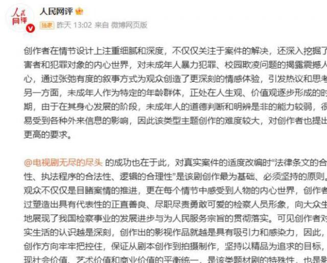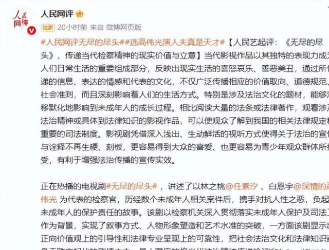 甚至得到了人民网评的推荐,觉得这部剧传达了当代检察精神的现实价值和构思。