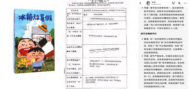 直到看到这本《冰箱放寒假》的阅读手册。 AI 在评价“情节简单,缺乏细节”的时候,我读到了孩子们隐藏在故事中的密码:那是他把动物园里的快乐时光揉进想象,让冰箱摆摊赚票的奇思妙想。当我把这个故事读给全班时,那个总是蜷缩在角落里的孩子,第一次挺直了背,听到自己的心声被温柔地读着。