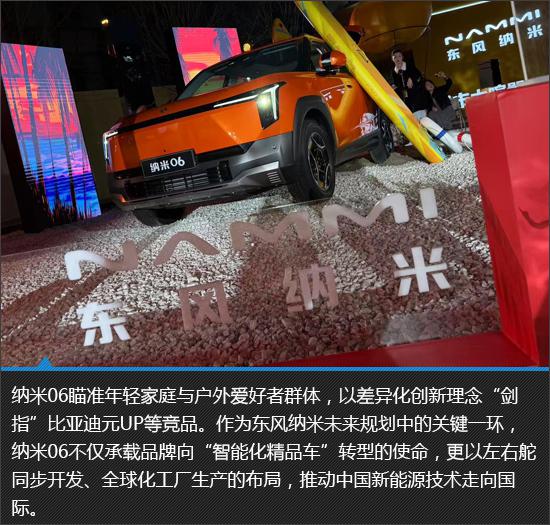 东风纳米 06 以魔方般的千变万化空间、自然美学和智能感受,将纯电小型化 SUV 将通勤工具升级为生活拓展平台。在未来,随着全球化战略的推进,纳米 06 或者将成为东风汽车在新能源市场的一张亮眼名片,将目标市场推向一个新的高度。