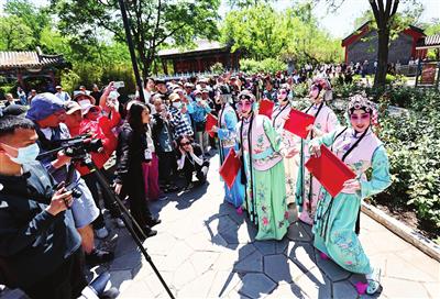 昨天," 2025 邂逅 · 天津-戏曲街角“活动在人民公园举行,沉浸式表演——戏曲《西厢记》为游客在假期增添了传统文化气息。记者 姚文生 摄