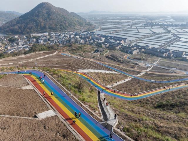 建议观景打卡:导航搜索“花海营地彩虹步道(南庄村)”,漫步花海基地彩虹步道,欣赏梯田花海景观,是一个非常适合拍照和户外探索的打卡点。 。