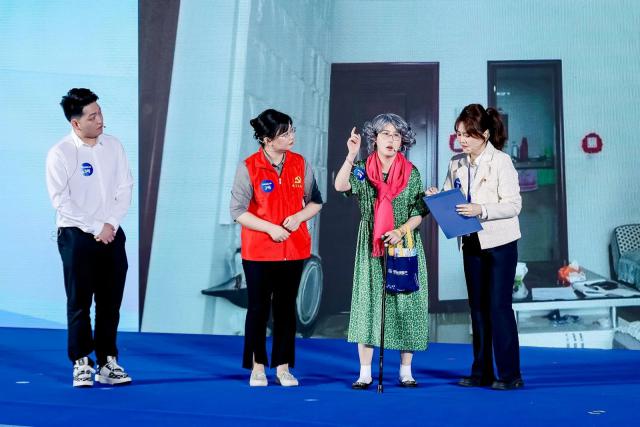 在专业技能竞争阶段,震撼社区治理的热点难点,不仅包括噪音扰民、绿化修剪、走廊堆积等“老大难点”,还包括关爱老人、社区议事、举办活动等“日常工作”。在真实还原社区工作场景的同时,通过“沉浸式演绎”和“辩论式设计”两种形式,使赛场成为治理课堂。参赛选手各展所长,有的化身为“金牌调解员”,用法理化解矛盾纠纷;有的负责“贴心居民”,通过走家串户积累信任。