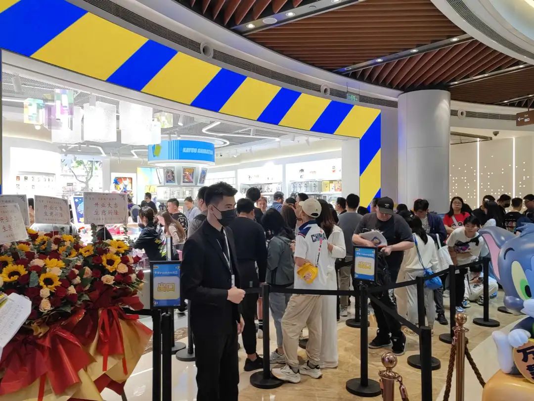 店铺开业后,随着大量顾客涌入店内,商家也开始采取限制流量的措施,门口排起了长队。记者观察到,由于人数过多,商场引导消费者进入二楼。“进店大概一个多小时。孩子喜欢,只能陪他!”一位刚进店的父母感慨地说。