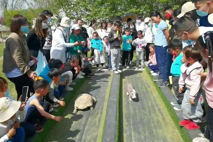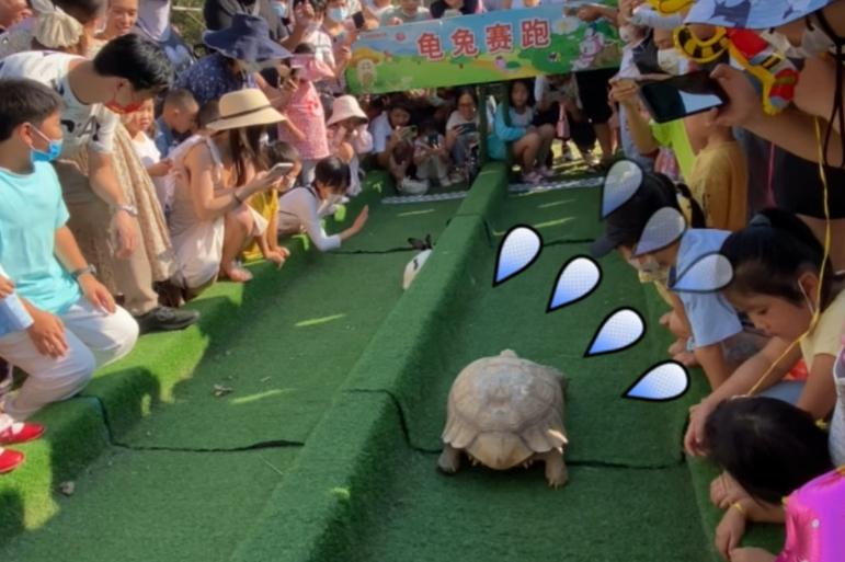 顽酷乡村精心打造了一条专属跑道。儿童可以自主选择为乌龟或兔子加油,感受激烈的比赛气氛。