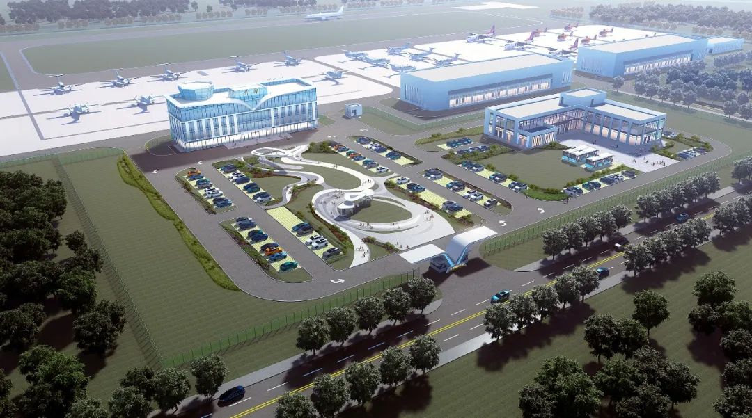 ↑德阳通用机场鸟瞰图(效果图)。图源德阳发布