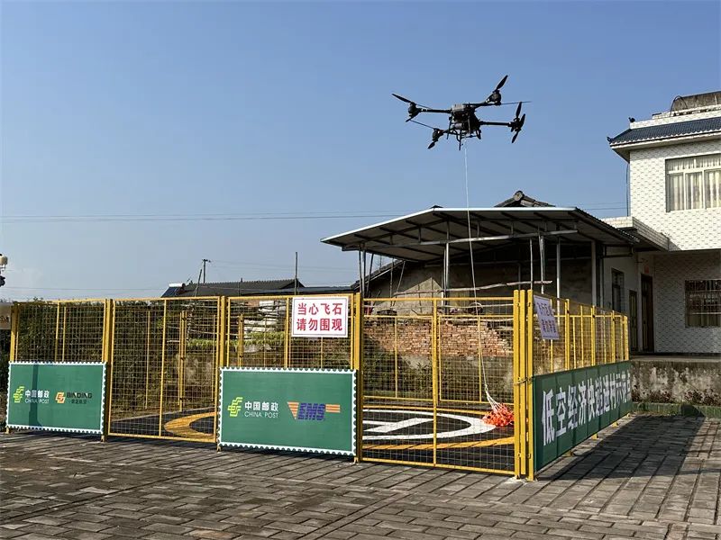 ↑首例无人机快递进入眉山市洪雅县村。图源眉山发布