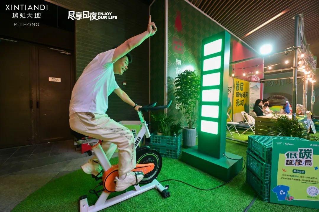 现场,上海碳秘馆设置了科普低碳知识、分享减碳措施等展示,以科普的方式加深了人们对低碳生活的认识。迪卡侬的共享循环站将为自行车租赁和二手自行车销售提供服务;LULEMON可持续瑜伽,TR捡跑团环瑞虹捡跑,旧书漂流,奢侈品回收保养,绿心能量场由“低碳超能局”、“循环乒乓球赛”、“分投行动队”、“绿环救援司”、“再生玩家散步基地”组成,通过大众的深入体验,传递健康的低碳生活方式。
