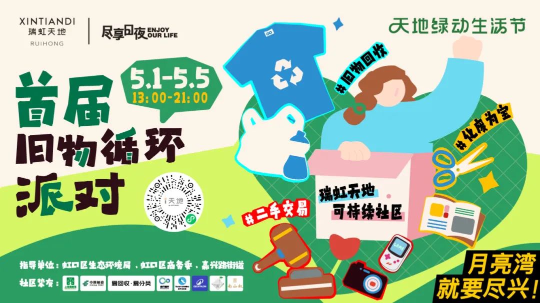 五一假期,瑞虹天地月亮湾变成了“循环经济实验室”,一场别开生面的“旧物循环派对”正如火如荼地进行着。