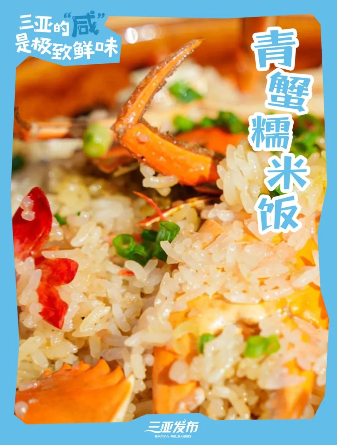 将炒好的五花肉糯米与青蟹肉块一起炒好