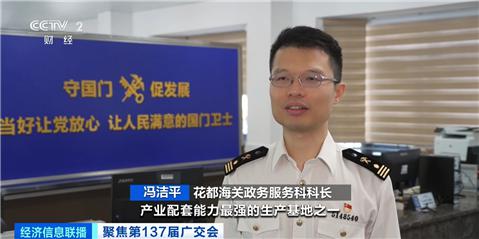 花都海关政务服务科长科 冯洁平:这是世界上集群最高、产业链最完整、配套产业能力最强的生产基地之一。今年第一季度,广州皮革制品和包装出口达到 32.63 亿元,同比增长 4.14%。