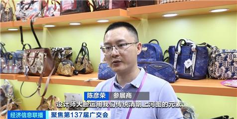 展商 陈彦荣:设计师大胆利用清明上河图传统元素进行二次创作,与时尚产品相结合。这组产品推出后,特别受海外客户的欢迎。已经销售和预购的产品数以万计,工厂的时间表也是满的。
