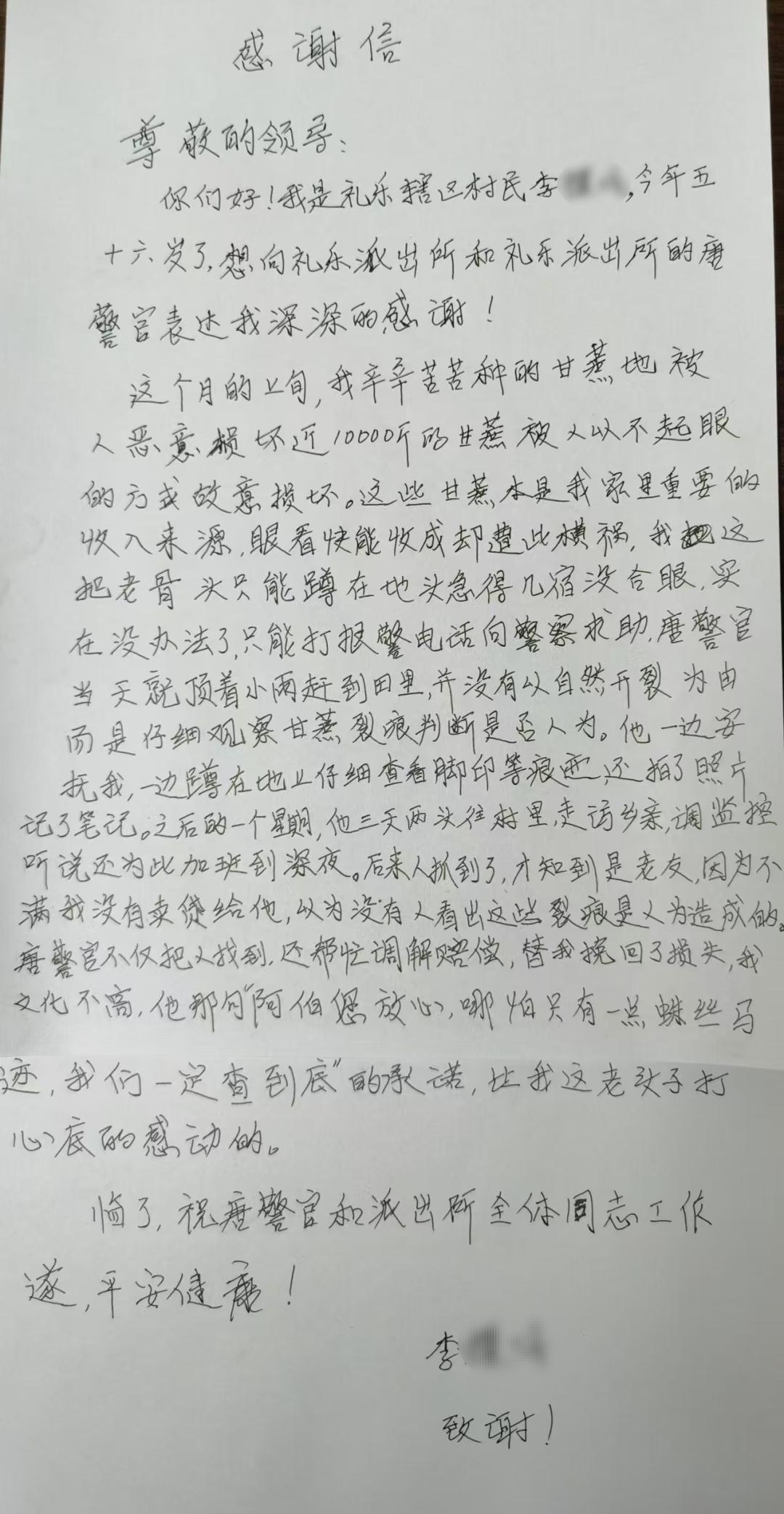 案件成功解决后,李阿伯手写了一封感谢信,发送到主任的邮箱。信中充满了对唐张伟的感激之情:“别担心,唐警方的“阿伯,哪怕只有一点线索,我们一定要找出来”的承诺,让我这个老人发自内心的感动。"