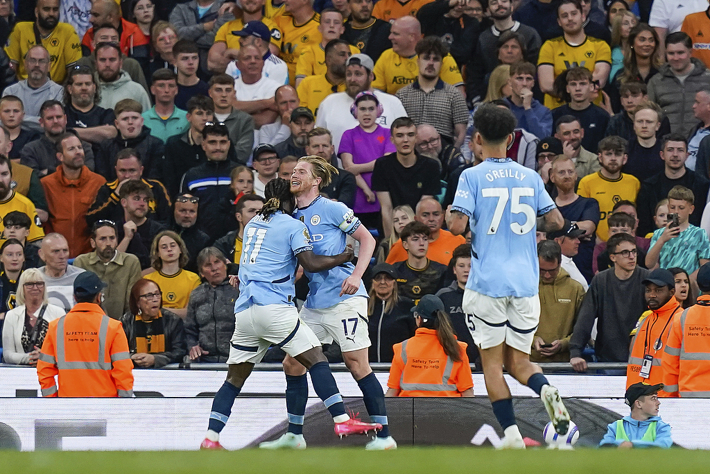 五月三日,曼城在英超第35轮主场对阵狼队,曼城以德布劳里的全场唯一进球1-0获胜,各项赛事迎来5连胜。