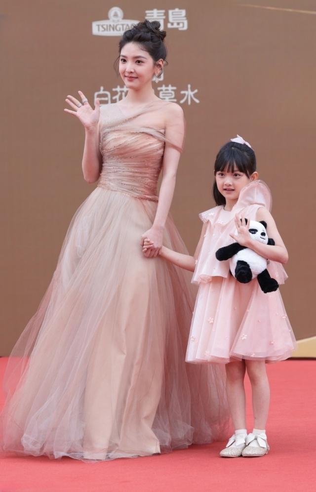 很明显,在北京的出发图中,还是美丽的盘发;不知为什么在青岛走红毯之前,临时换了发型。