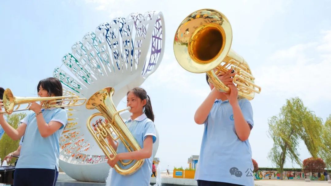 沿着宽阔的海岸线一路向南,刘家湾赶海园的热闹也在蔓延。在鹦螺广场上,“闪烁”的管乐团团队瞬间吸引了许多市民和游客聚集和欣赏,引起了阵阵掌声和欢呼声。在人群中,管乐的年轻音乐家们以行进的方式在景点散步,从广场到海边,徜徉着美丽的大海和天空。无论走到哪里,观众都深深震撼,掌声和欢呼声此起彼伏,“填满”假期的气氛。