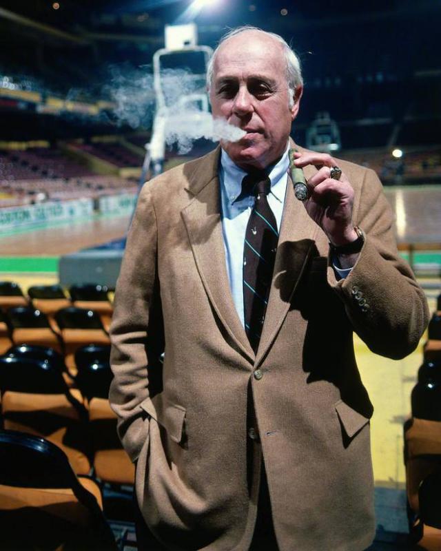 还有一个必须提到的角色,就是凯尔特人传奇主教练奥尔巴赫。他任教绿军。 16 年,获得过 9 一个冠军,包括一个冠军, 8 连冠!这一荣誉应该是后人难以打破的。