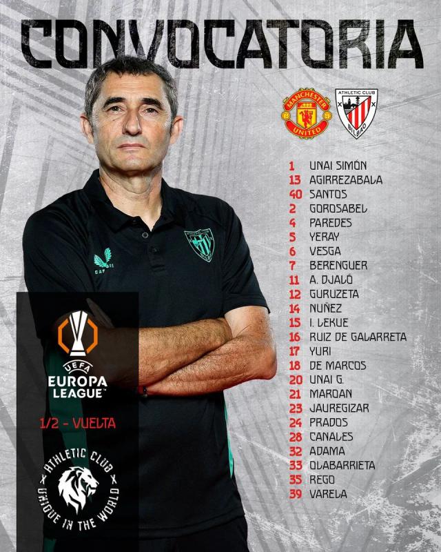 周三,毕巴宣布出征曼彻斯特。 24 人大名单,但是伊纳基和尼科是球队的主力球员。 · 威廉姆斯兄弟也没有和球队一起出去,加上奥伊汉,他们在第一轮因伤缺阵。 · 桑塞特,「巴斯克雄狮」缺少前三名不可缺少的明星。